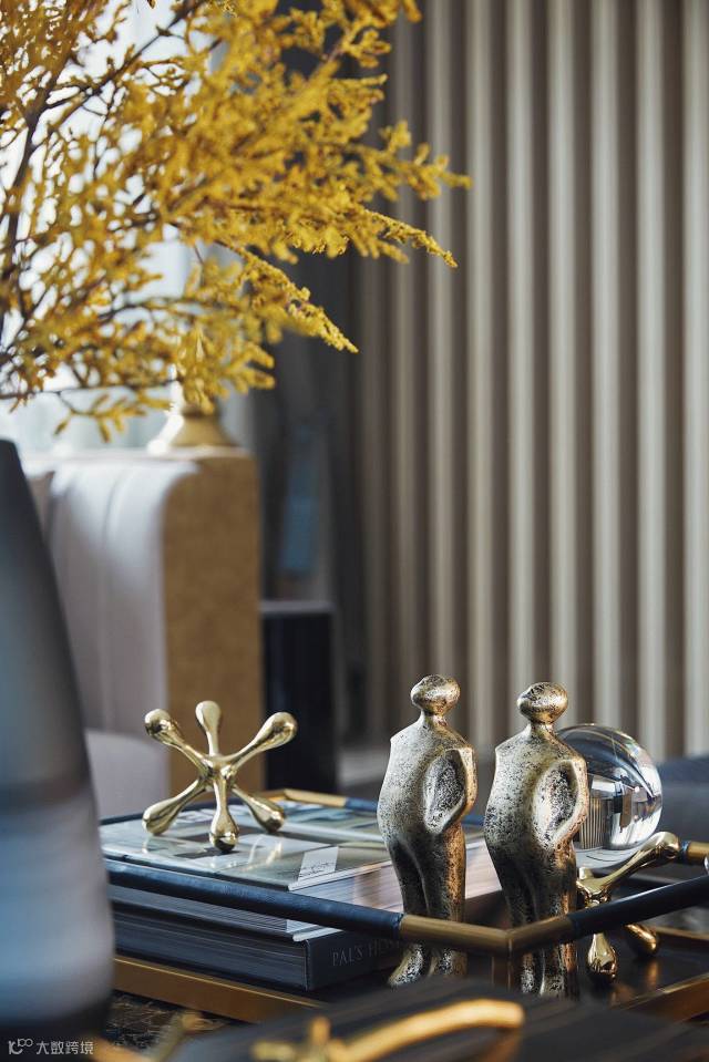 含蓄、高雅的生活方式,经典元素加以简化和丰富,家具形态更显简约与流畅,空间配色以自然大地色系主导整个空间,以沉稳、静逸的灰色与蓝色作为点缀,营造安静、奢华的空间感受。