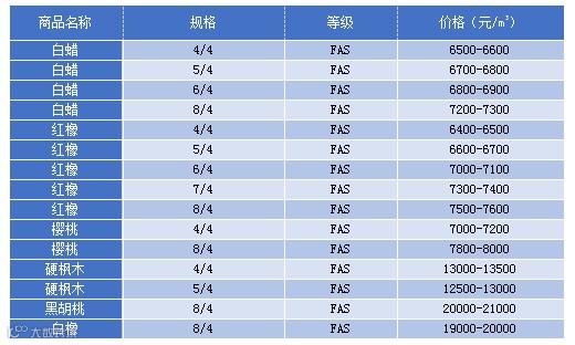 值得一提的是,在各种类材种当中,白蜡木、红橡、樱桃等材种因可替代性强的缘故,其未来价格所面临的下跌风险也将更大,而白橡、黑胡桃、硬枫木等则因其不可替代而使得其价格的抗跌能力较强。