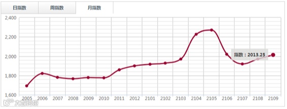 中国•广东鱼珠(刺猬紫檀)价格指数走势图