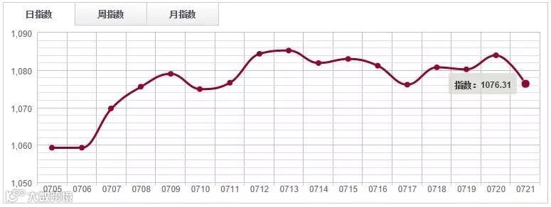 7月21日,中国木材指数(CTI)报收1152.25点,环比收跌0.6%。其中鱼珠木材指数(YTI)收于1093.59点,跌0.72%;福人木材指数(FTI)报收1244.29点,跌0.74%;大西南木材指数(DTI)报收1085.50点,跌0.03%;南康木材指数(JTI)报收1719.98点,跌0.07%。