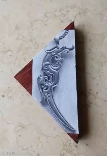 这块三角形状的边角料是某摆件雕刻厂丢弃在垃圾堆,被一位高手捡漏回家的。从外表看起来,油性、密度、色泽都还不错,唯一的缺陷就是尺寸实在太小啦!像这么一小块边角料,很多人都瞧不上眼。但在高手眼中,只要充分发挥想象力,就能完美锐变,变废为宝。