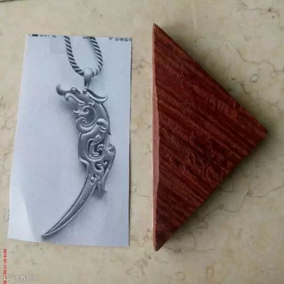 首先通过测量边角料的大小,再通过电脑描绘出来图纸。从这图纸来看,这应该是“飞龙在天”的图案,大伙看着有木有觉得很像呢?其次,把图纸小心翼翼的贴在边角料上面,等胶水干了以后,再进行裁剪和雕刻。