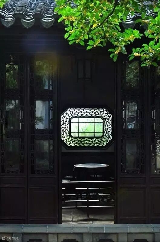 木制的雕花窗外