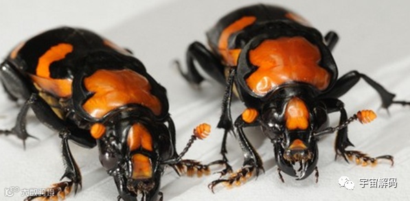 这些甲虫是昆虫世界的殡仪者,它们喜欢吃死的腐烂动物的臭肉。它们遍布世界各地,以小型哺乳动物和鸟类的尸体为食。通常在动物死亡后一小时之内,甲虫会快速到达现场,如果发现尸体的甲虫是一只雄性,它会向空气中释放一种化学信息素,这基本上是在向附近雌性传达信号。