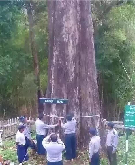 据了解,目前,实皆省内的森林比其它省邦茂密,林业管理局还在各大林区进行巡查,看是否还会有树形更大、树龄更长的柚木存在。