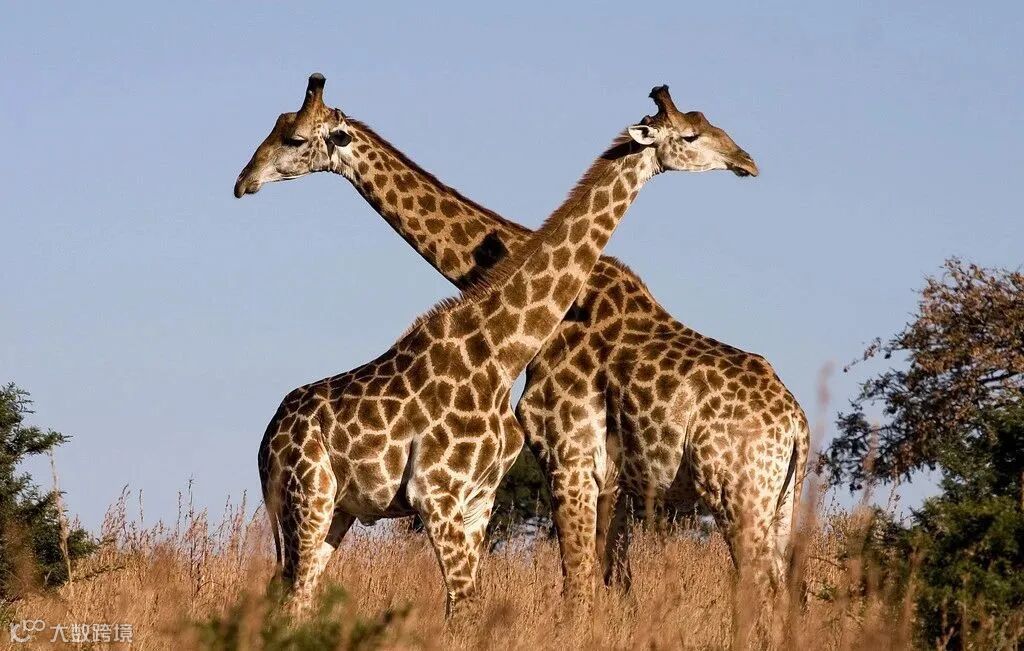 长颈鹿们有时候会互相用脖子触碰对方,好像很亲密的样子。其实脖子是长颈鹿最有牌面的地方,也是他们的信仰。所以长颈鹿打起架来,也要用脖子一较高下。