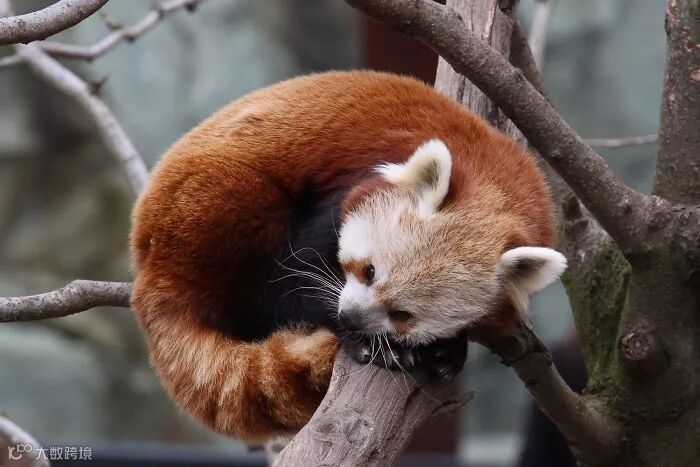 小熊猫在睡觉时会用毛茸茸的尾巴当毯子,盖在身上取暖。
