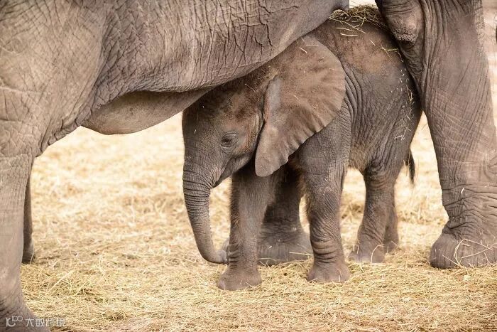 小象出生后,象群中的其他大象妈妈会吹出类似喇叭的声音,来庆祝或宣布小象的到来。