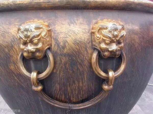 这些大水缸名叫“太平缸”,有铁的、铜的,还有铜质鎏金的,每口缸都有一千多公斤重。