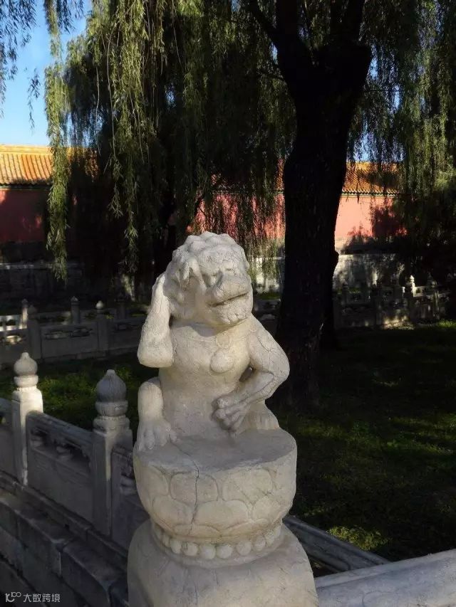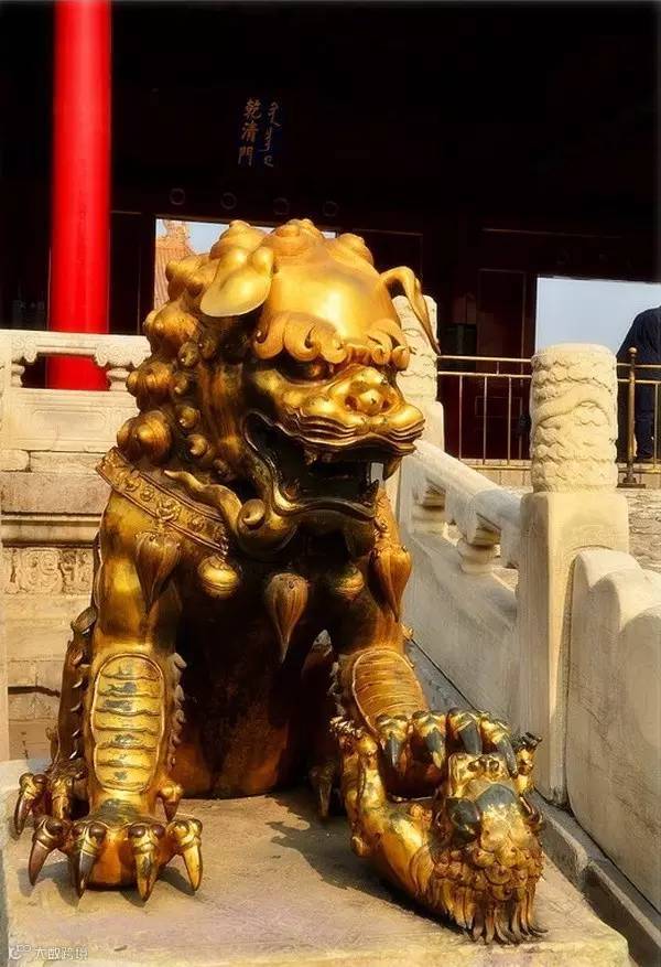 故宫里的狮子都是威风凛凛的,个个竖着耳朵虎视前方。但凡事总有例外,在乾清门前面就有两只“例外”的狮子!