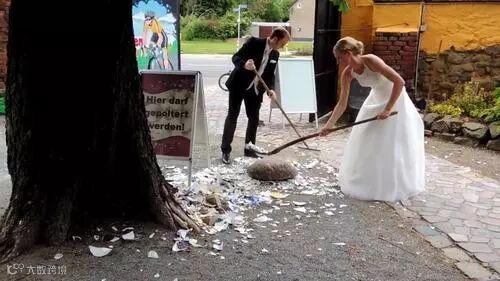 ,在婚礼前一天晚上,新郎,新娘以及他们的朋友和家人聚在一起将盘子和食物打破。新郎和新娘必须一起清理垃圾。这象征着他们将共同努力,克服困难时期的方式。