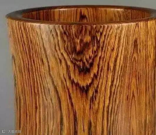 二、从纹路看,大叶黄花梨的纹路呈“锯齿状”甚至“鸡翅纹”,显得更“杂乱”,不够流畅,而黄花梨的纹路则是“有条有理”“行云流水”。