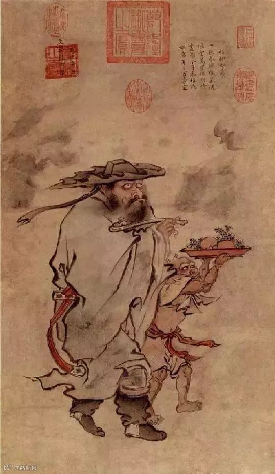 据《历代神仙通鉴》记载,钟馗原是唐玄宗年间的文武双全的进士,因颜值太低落榜,愤而撞死在大殿台阶上。后来皇帝知道了这件事,很惋惜,赐以红官袍安葬钟馗。