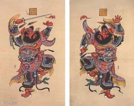 ▲天津杨柳青 秦琼尉迟恭武门神