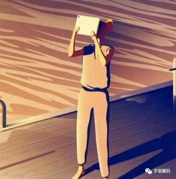 人们现在虽然生活在阳光之下,但是他们却不愿意找到阳光,而是选择用平板遮住自己的脸