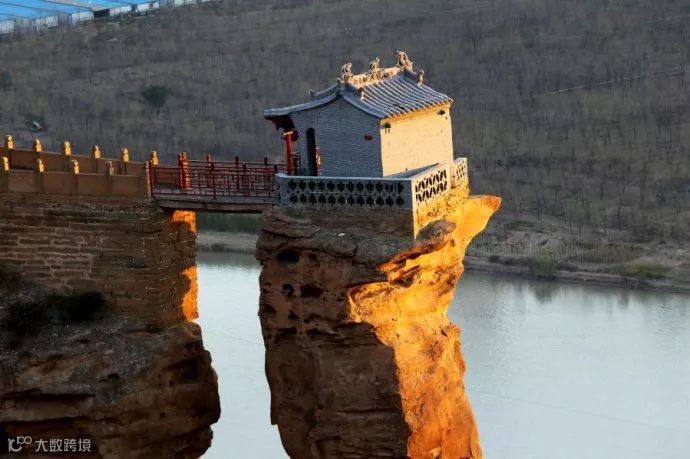 寺庙亭堂跟石头城最外围的绝壁仅隔着几米远的距离,它独自矗立在一块周长15米左右的巨石之上,通过一小木桥与石头城连接。