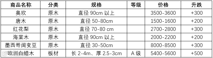 而进口阔叶材红橡、柚木、刺猬紫檀等也在报涨的名录当中!