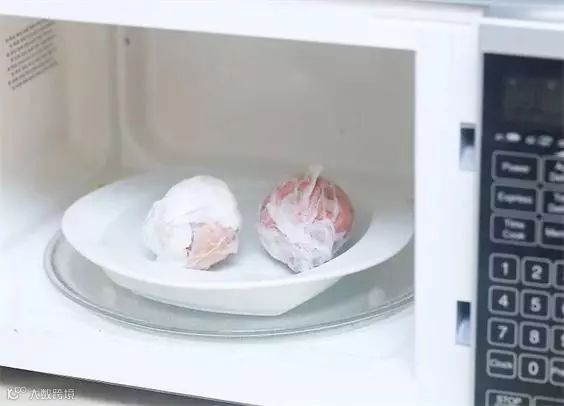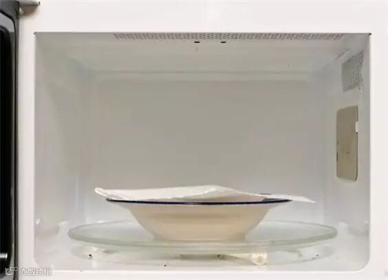 4、用一张厨房纸巾把盘子覆盖住,放到微波炉高火加热50秒钟。