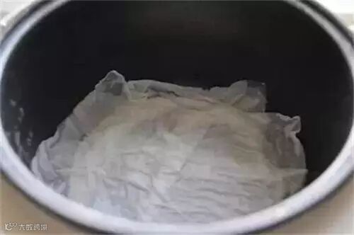 1、把5张纸巾铺在电饭锅底,倒入半杯水。