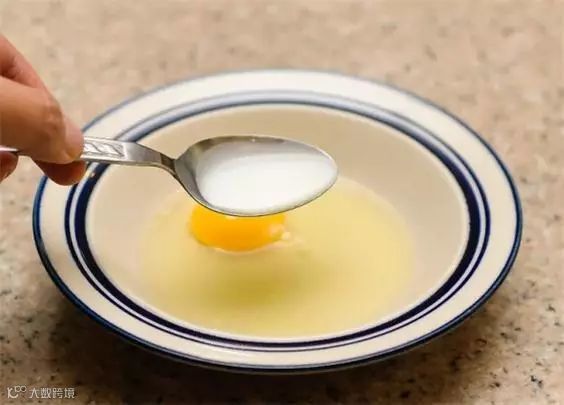 2、把鸡蛋打到碗里,加一勺牛奶,喜欢奶油的话也可以用奶油代替。