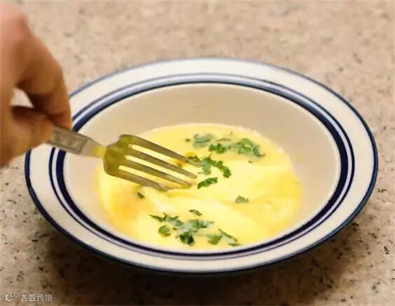 5、取出鸡蛋,加入碎奶酪和葱碎,放到微波炉高火烤30—45秒钟,美味的牛奶鸡蛋就做好了!