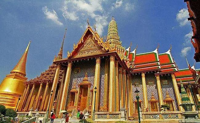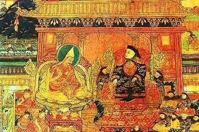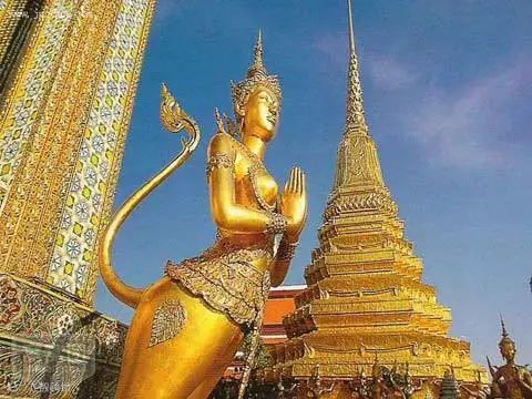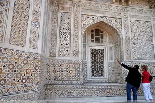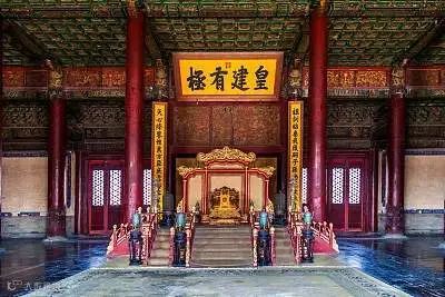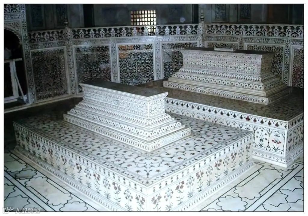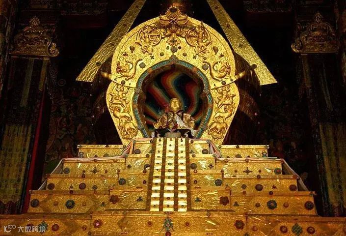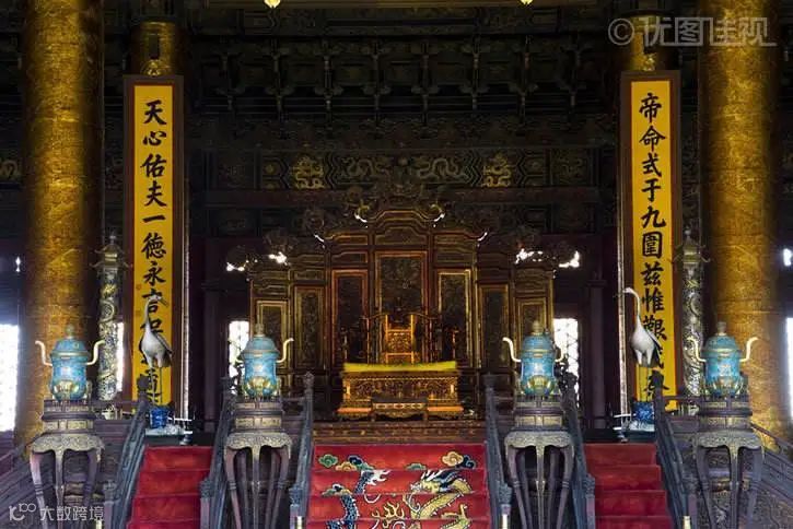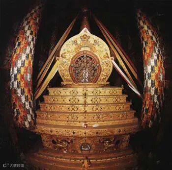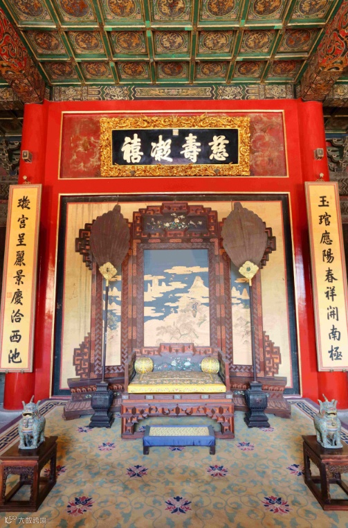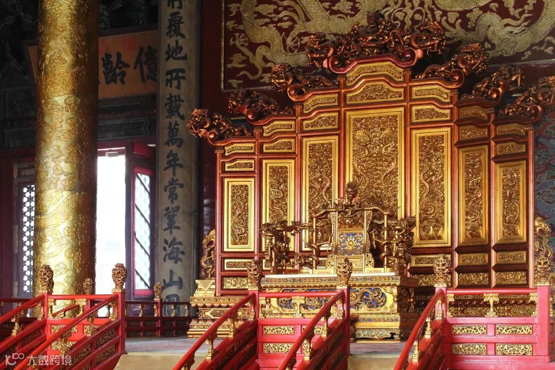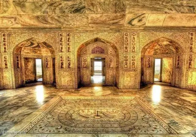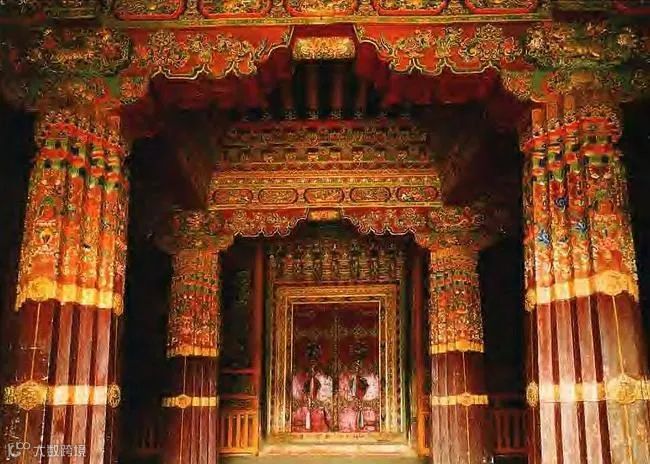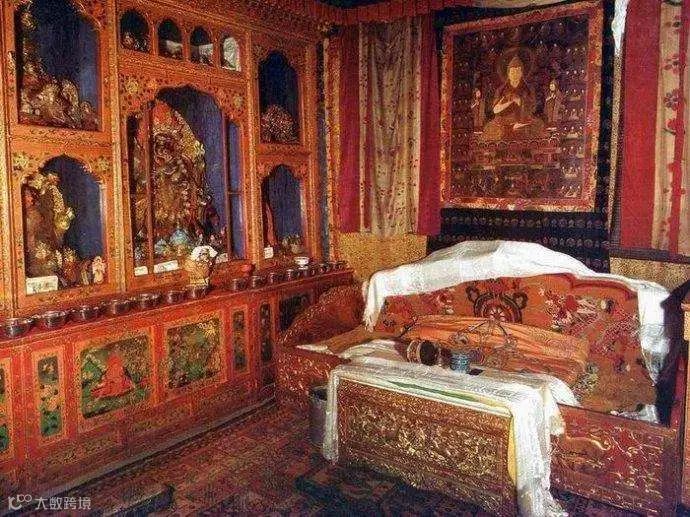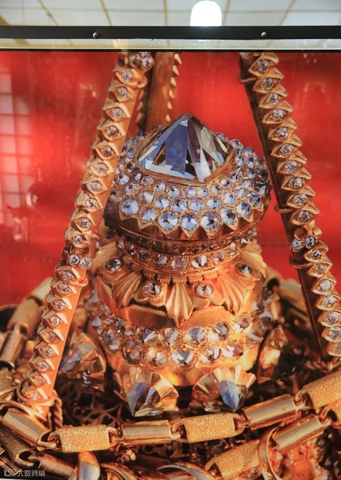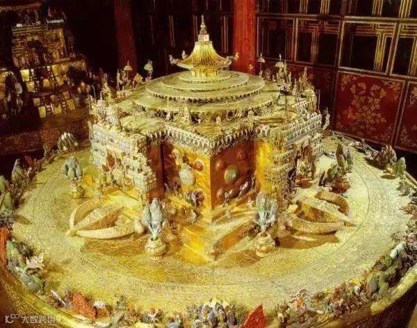 殿内陈设豪华、金盆玉碗,珠光宝气,