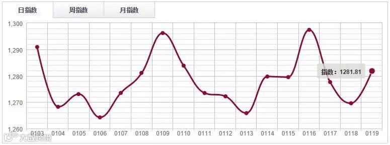 1月19日,中国木材指数(CTI)报收1150.18点,环比上涨0.4%。其中鱼珠木材指数(YTI)收于1049.70点,涨0.46%;福人木材指数(FTI)报收1254.57点,涨0.71%;大西南木材指数(DTI)报收1142.38点,跌0.39%;南康木材指数(JTI)收于1722.71点,涨0.08%。