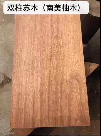 3、双柱苏木(俗称:南美柚木):木材散孔材;心材黄褐色至红褐色;木材光泽强,无特殊气味和滋味;纹理直略交错;气干密度0.75-0.79克/立方厘米,心材耐腐抗蛀,木材中至重;强度高;可用于室内装修,家具,户外木工程,造船等。