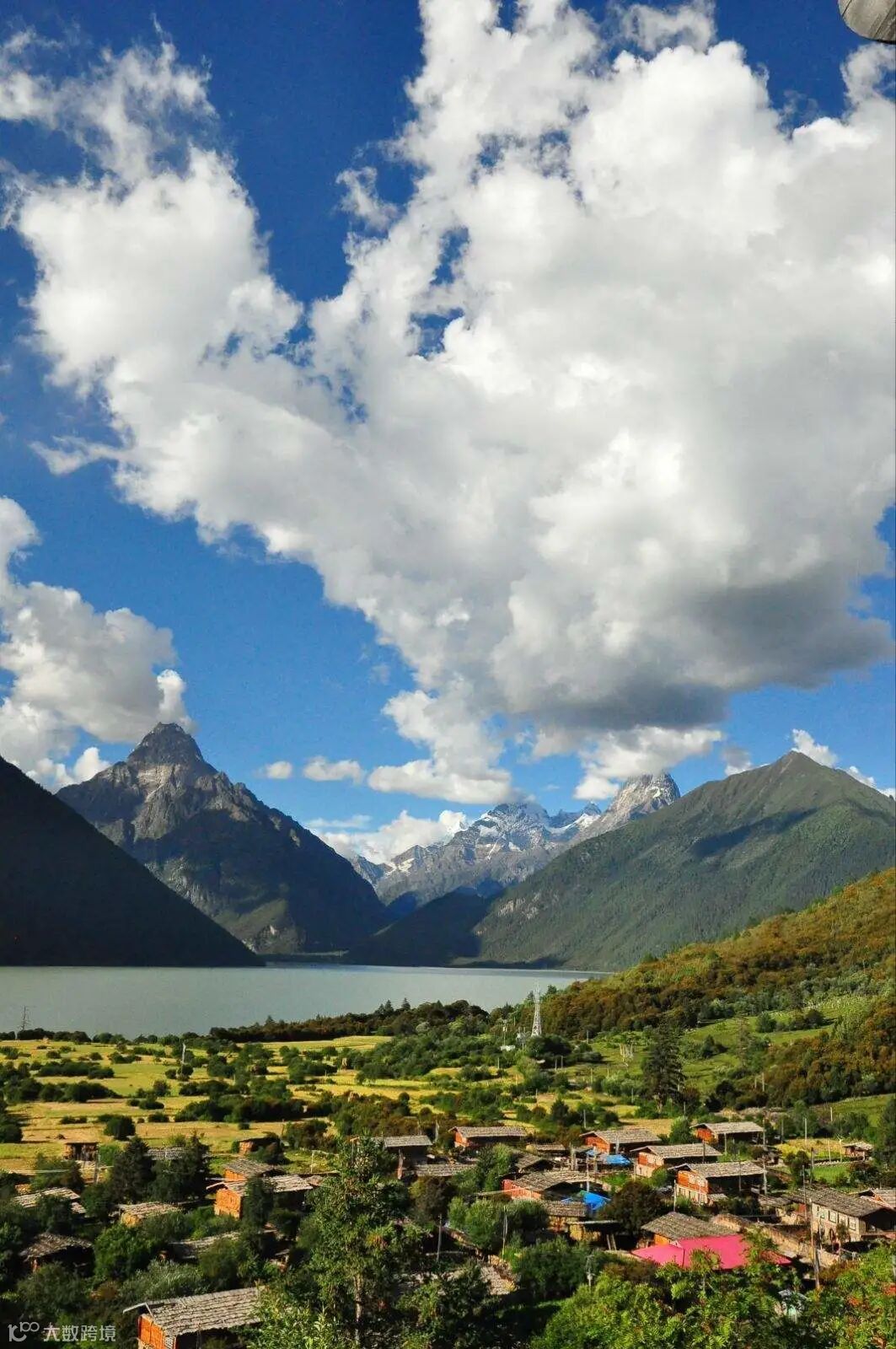 高耸连绵的群山所怀抱