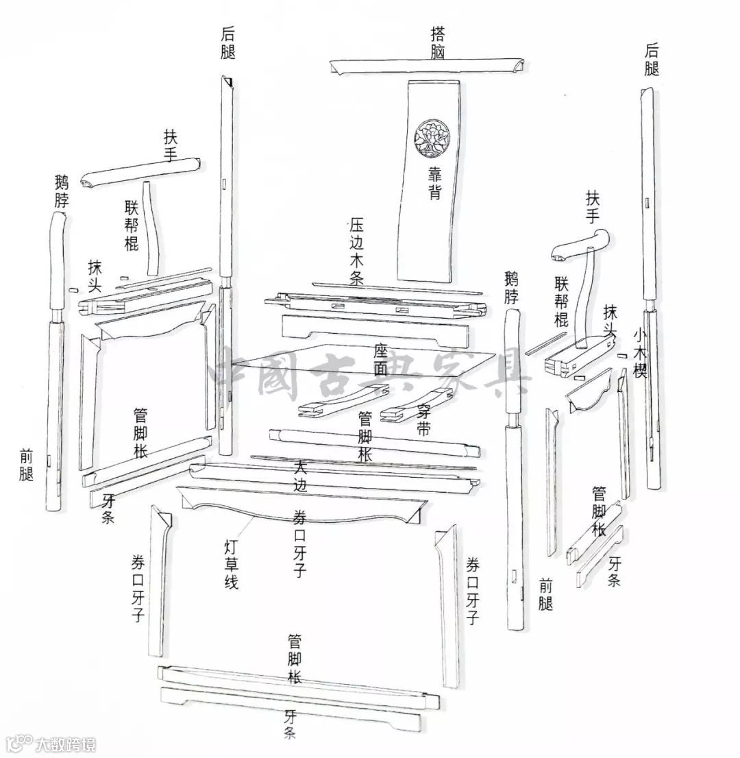 王世襄先生在《明式家具萃珍》中提到的:“宋椅的靠背扶手三面平齐,禅椅的扶手稍稍下降,至玫瑰椅而再度下降。宋椅、禅椅靠背扶手之内都任其空敞,不加饰件。”