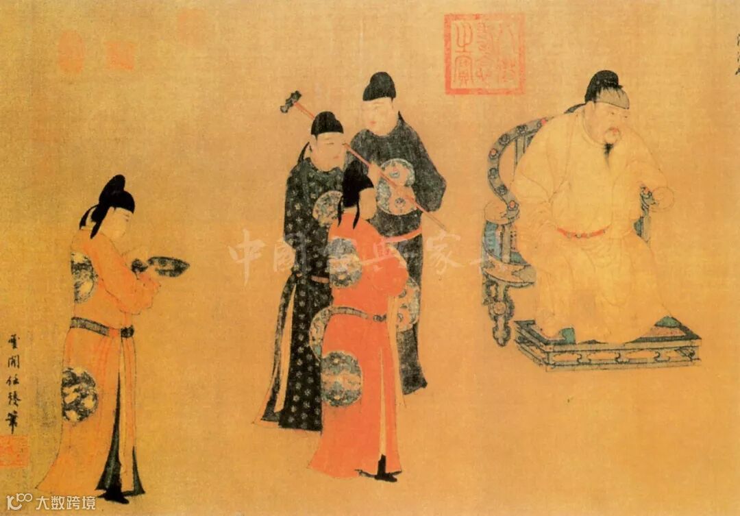 故宫博物院藏《宋高宗皇后像》中,赵构的皇后所坐的一具也是典型的灯挂椅。南宋刘松年《笙乐图》中,一位文士也是侧身倚靠在正中摆放的灯挂椅上观舞听曲。