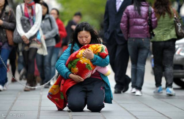 她的孩子得了眼疾,没钱治疗,这位母亲在网上发帖求助。有网友让她抱着孩子从广州大道中边走边跪到体育中心,能跪到就给她2万块钱,救儿心切的她信以为真…