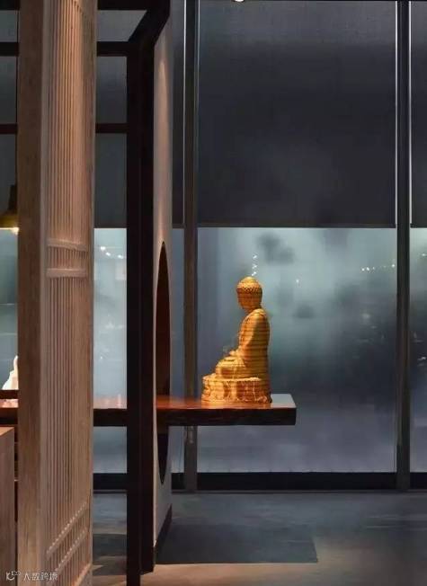 是以隔断下部为完全遮蔽式设计。隔断两侧隐蔽无法通透,上端敞开,贯通彼此相连的天花顶棚,通过线条的凹凸变化、墙面挂置壁饰或采用浮雕等装饰物的布置,从而达到浓厚的艺术效果。