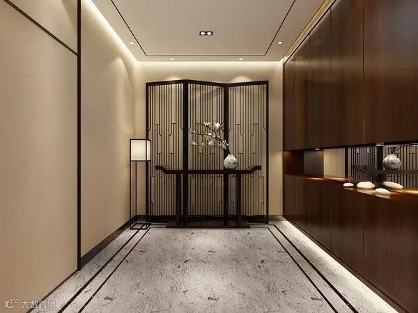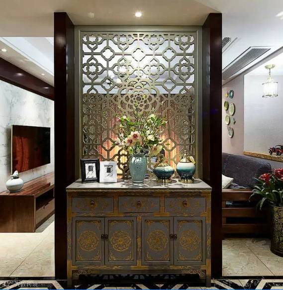 新中式玄关不仅古色古香,而且具有很强的实用性,既可以展现一个家最美的一面,又能挡住家庭区域的隐私,是一种“遮起来的美”。