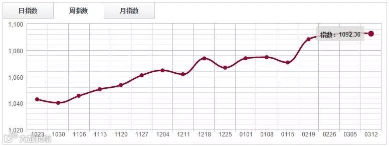原木分类指数本周走出横盘整理行情,指数最终报收1092.36点,涨0.27%,成交量减少4.84%。三大市场2升1跌,其中鱼珠和福人原木指数分别上涨0.17%和0.04%,大西南原木指数小幅回落0.84%。