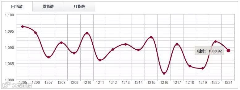 12月21日,中国木材指数(CTI)报收1155.25点,环比收跌0.44%。其中鱼珠木材指数(YTI)收于1046.49点,跌0.3%;福人木材指数(FTI)报收1263.10点,跌0.49%;大西南木材指数(DTI)报收1157.06点,跌0.59%。