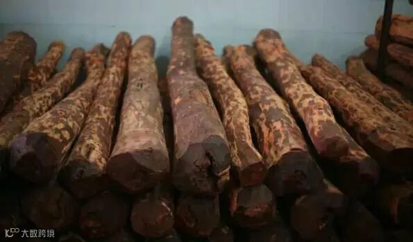 紫檀上船前就没有枝叶,只剩主干,一来便于运输,二来也提高了利用率,枝枝杈杈没有用处,故无须上船。