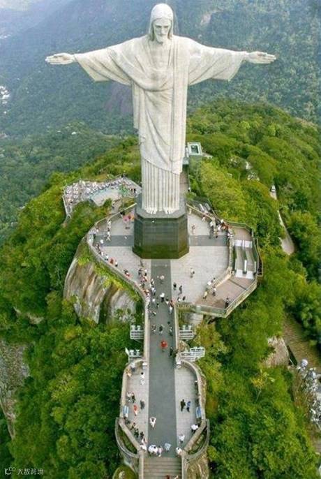 62.里约热内卢的基督救世主雕像,坐落在国家森林公园中高710米的科科瓦多山顶之上,俯瞰着整个里约热内卢市。它是该市的标志,也是世界最闻名的纪念雕塑之一。耶稣张开双臂欢迎来自世界各地的游客,是巴西人民热情接纳和宽阔胸怀的象征。