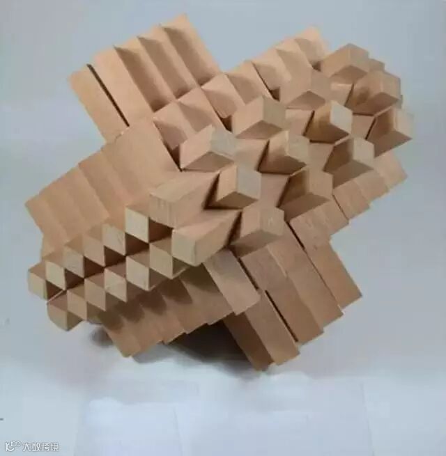 今天,鲁班锁有了更加复杂的内部结构,从外形到材料都在不断改变着,甚至以它特殊的造型方式在艺术领域崭露头角。