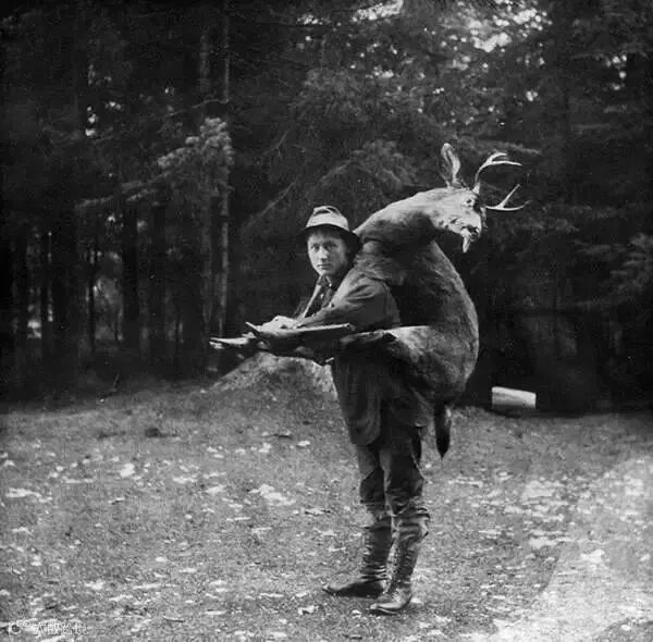 打了一只鹿,背回家。照片大约拍于20世纪10-20年代。