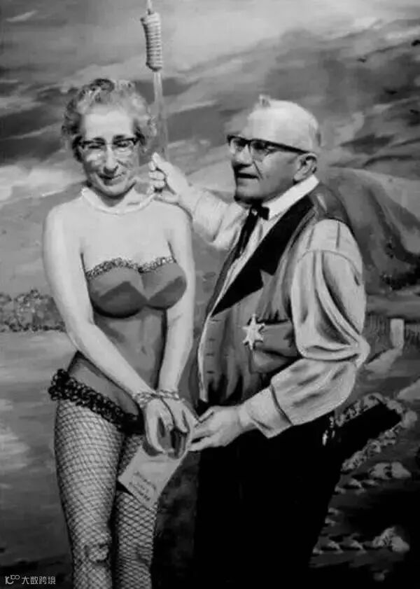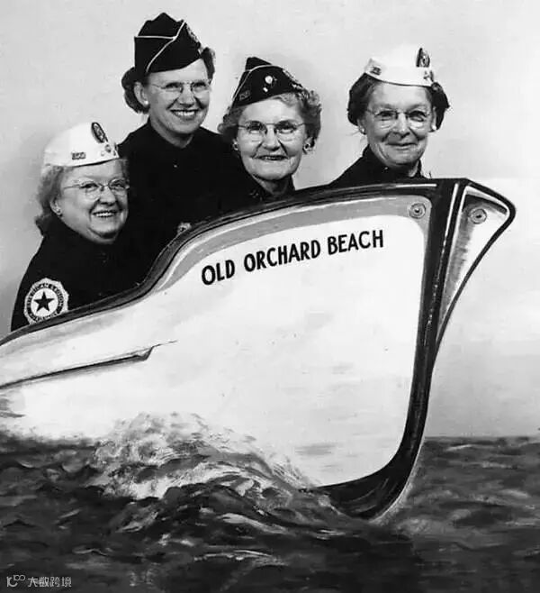 美国,旧奥查德比奇,四位美国大妈创意合照,很有泰坦尼克号感觉。照片大约拍于20世纪30-60年代。