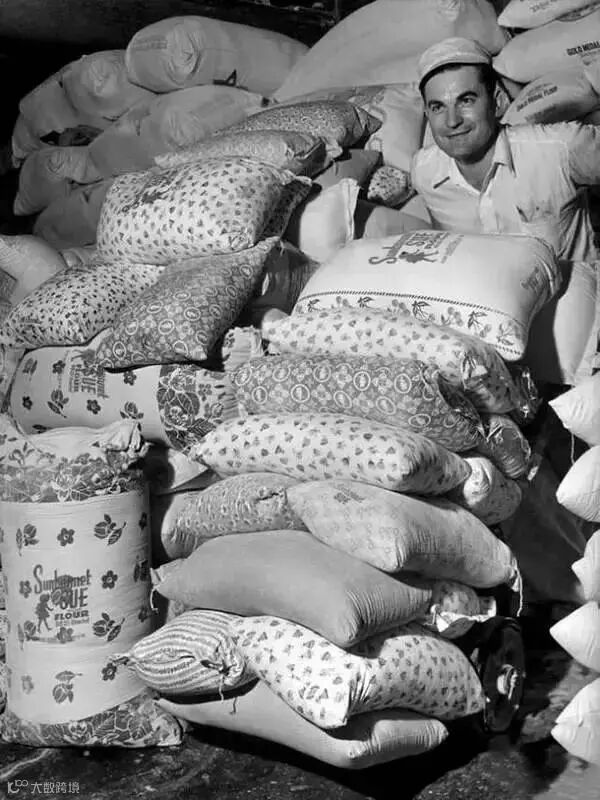 1939年,面粉厂用印有花纹的布袋装面粉,这样穷人家就可以直接用这些布袋做衣服了。