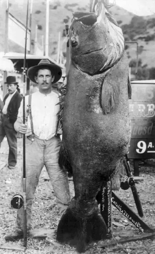 这位渔夫钓到了193公斤的黑鲈鱼,这样的世界纪录到现在也没破。照片大约拍于20世纪30年代。