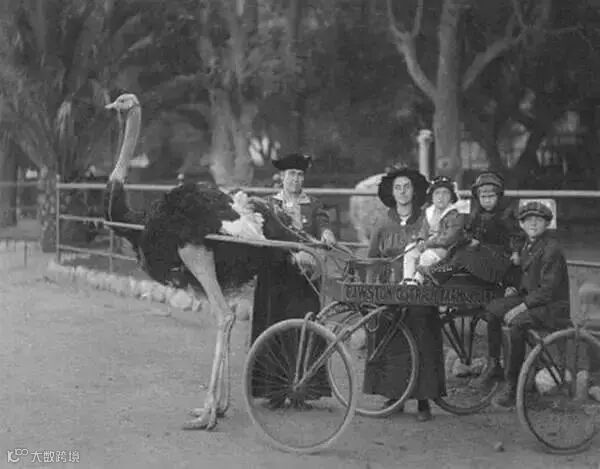 英国,鸵鸟拉车。照片大约拍于20世纪10-20年代。