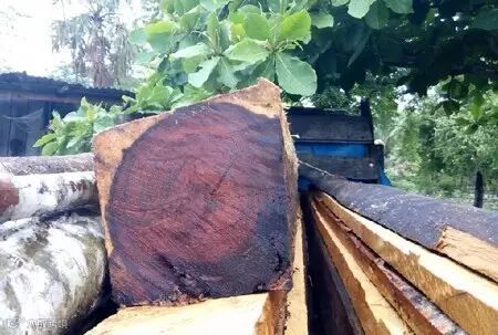 在当地锯木厂,白酸枝原木被加工成方料
