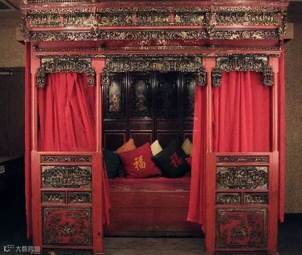 拔步床是一种传统的大型古床,在床与前围栏之间形成一个不小的廊子,廊子两头可置放箱柜之类的小家具。拔步床最大的特点就是私密性强,虽在室内使用,却似一幢独立的小屋子。对于这种注重隐秘性的床具来说,少不了用蚊帐隔开生活和休息区域。