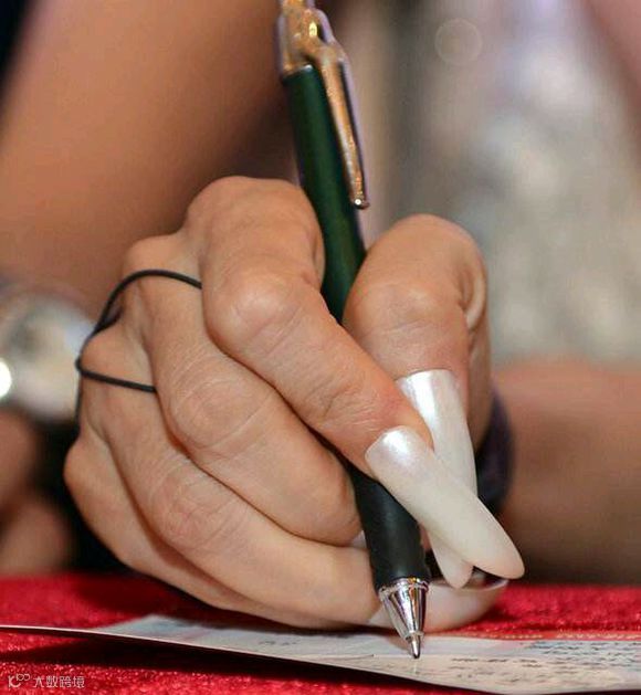 这么长的指甲稍有不注意就会断掉,据说杨丽萍每年都会去保养她的指甲。