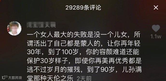 没想到这条动态下却有人评论说:"一个女人最大的失败是没一个儿女",令人震惊的是,这条评论收获了上万点赞。