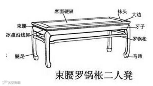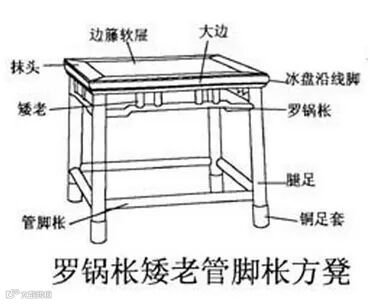 一般用于桌、椅类家具之下连接腿柱的横枨,因为中间高拱,两头低,形似罗锅而命名。