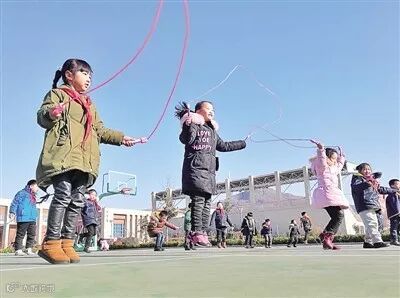 江苏连云港,海州湾小学的学生在体育课上跳绳。王健民摄 光明图片/视觉中国